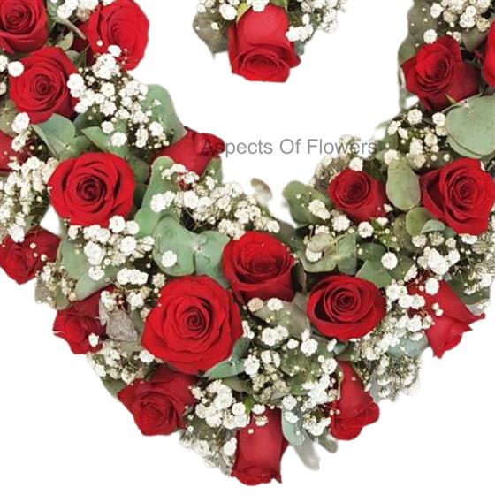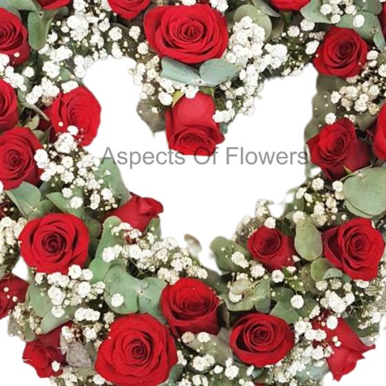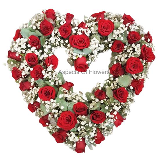 Loose Open Heart tribute is ideal for conveying your condolences. Red roses, and gypsophilia that make up this funeral tribute. With no doubt, this open heart design will express your sincere sorrow.